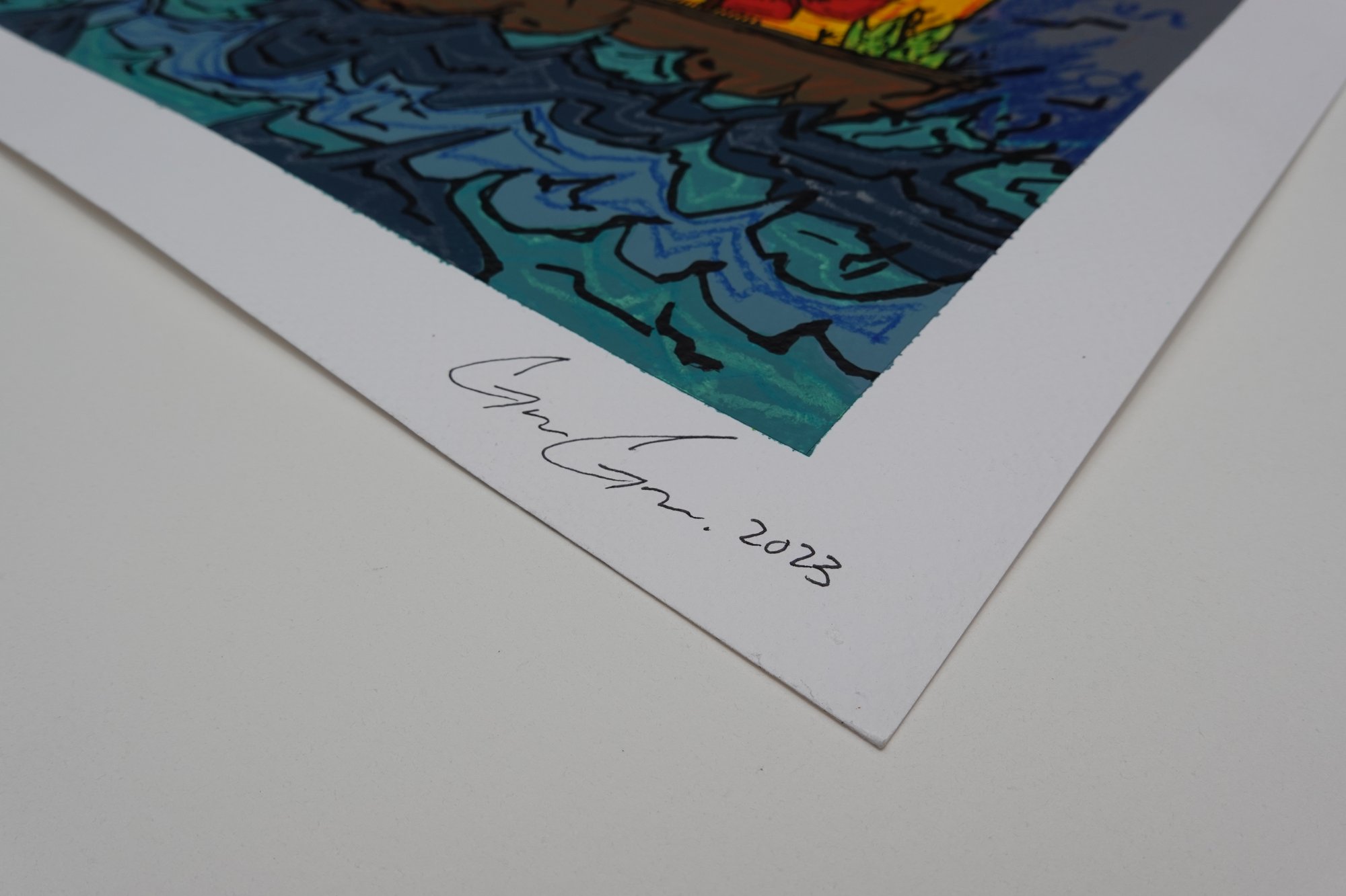 The artwork is accompanied by a signed certificate of authenticity and includes complimentary shipping.